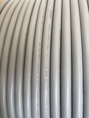 Cáp điều khiển có lưới chống nhiễu AGT-RVVP300/500V 30x0.75mm2 AGTEK với 30 lõi dẫn bằng dây đồng trần mềm được cách điện bằng vỏ PVC, được đánh dấu lõi bằng mầu nâu, xanh dương, đen và 1 lõi vàng/xanh lục, Sợi độn PP giúp chịu lực cao, chống nhiễu 2 lớp lá đồng và lưới đồng, vỏ bọc bên ngoài làm bằng nhựa PVC mầu ghi chắc chắn, có thể chống chịu tốt các tác nhân từ ngoài môi trường, thích hợp với mọi môi trường trong nhà, cáp cho dự án công trình nhà máy và tòa nhà.