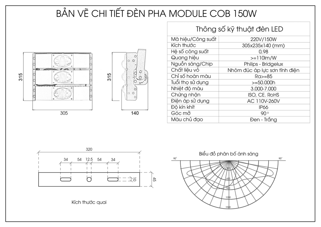 Đèn pha module COB Oem Philips - 150W (3*50w)