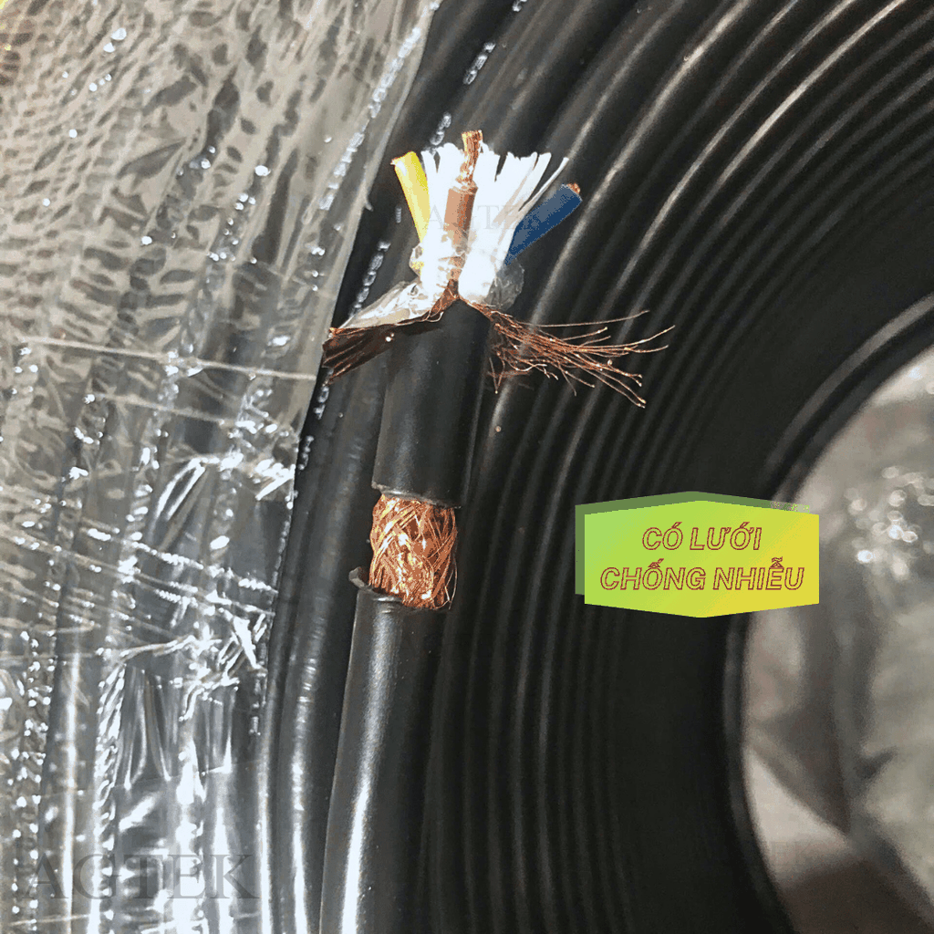 Cáp điều khiển có lưới chống nhiễu AGT-ZR-PVC 300/500V 4x0.75mm2 AGTEK với lõi dẫn bằng đồng mềm nguyên chất 100% được cách điện bằng vỏ PVC và được độn giữa các sợi cáp bằng sợi PP giúp chịu lực kéo cao cũng như giảm bớt nhiễu cho các lõi với nhau, bọc tổng các lõi bằng màng xốp giúp cố định cáp không bị lỏng lẻo trong quá trình thi công cũng như uốn gập, vỏ ngoài làm bằng hợp chất PVC cao cấp mầu ghi giúp chịu các tác nhân môi trường từ bên ngoài