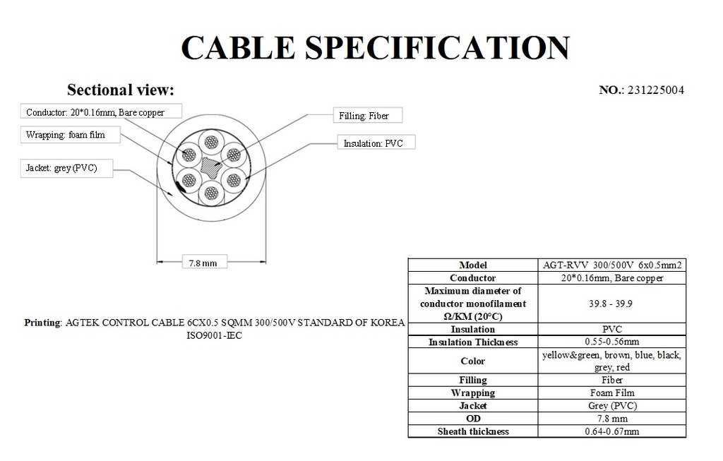 Model | AGT-RVVP 300/500V 6x1.0mm2 |